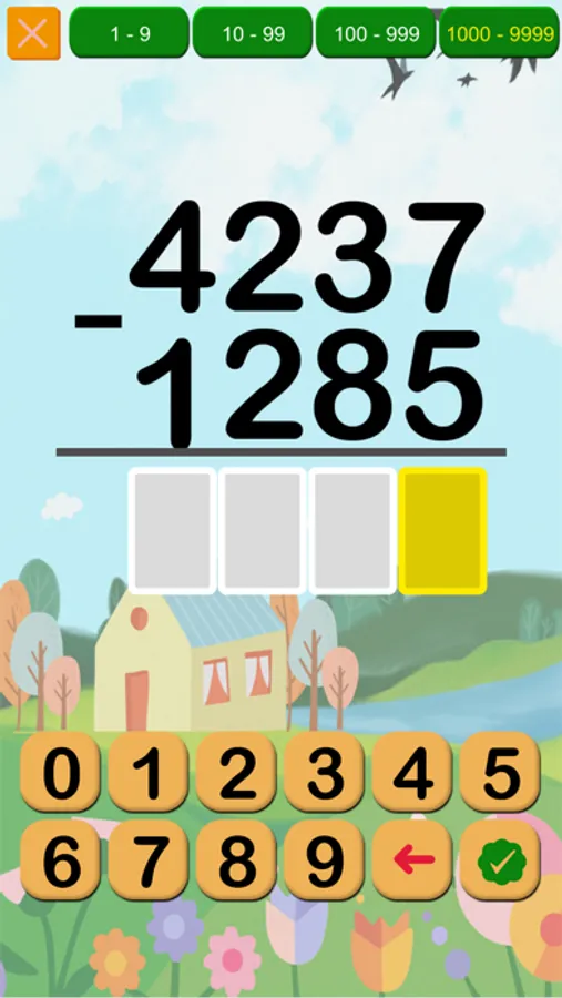 You can also set difficulty level by selecting correct number range from 1 to 9, 10 to 99, 100 to 999 and 1000 to 9999 as per your kids learning capacity.
