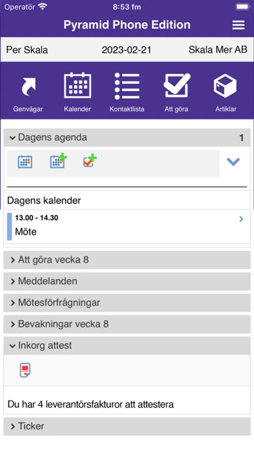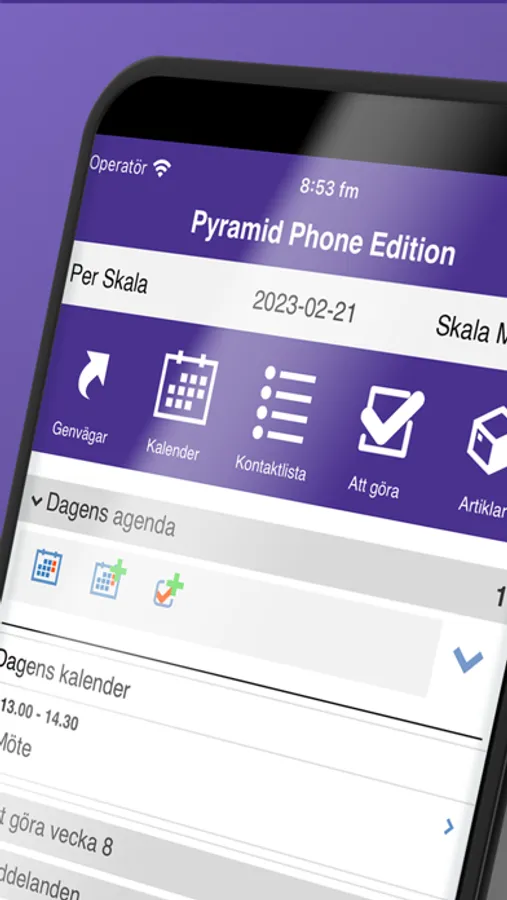 Affärssystemet Pyramid Nova Office har en tillhörande app som ger dig tillgång till delar av din företagsinformation vart du än befinner dig. Arbeten som sker ute på fältet kan enkelt tidrapporteras i mobilen. Du har också dina arbetsordrar med dig i appen, som säkerställer att arbetet blir gjort enligt beställning. Du kan se och hantera kunder, kontakter, leverantörer, personal, kalender samt dina aktiviteter.