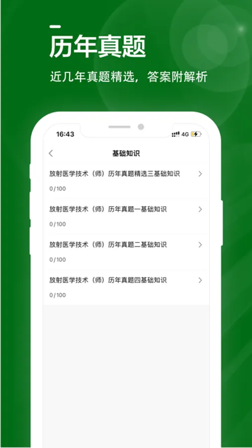 放射医学技术全题库本软件适合于全国卫生专业技术资格考试,放射医学技术(士、师、中级)考试专业,包括放射医学技术(士)、放射医学技术 初级(师)、放射医学(中级)考试题库,每道题附解析。可随时随地学习练习,有效帮助顺利通过考试,学习知识通过考试必备神器!