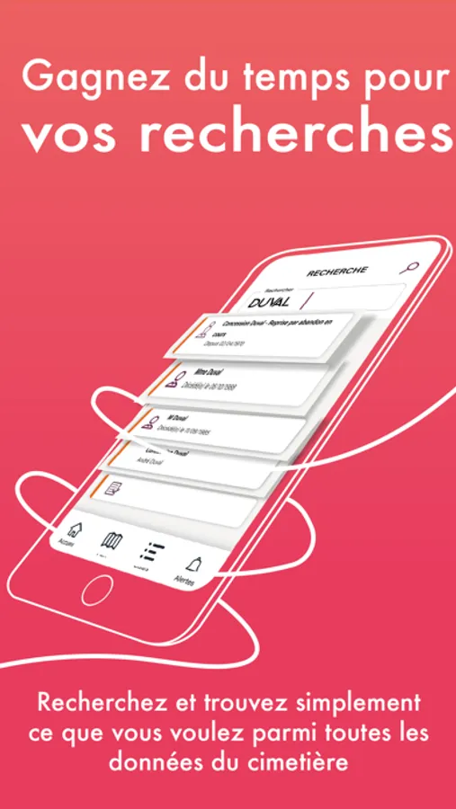 Grâce à son puissant outil de recherche, l’application mobile vous permet de retrouver très rapidement une concession dans votre cimetière sans avoir à rechercher dans vos archives papier.