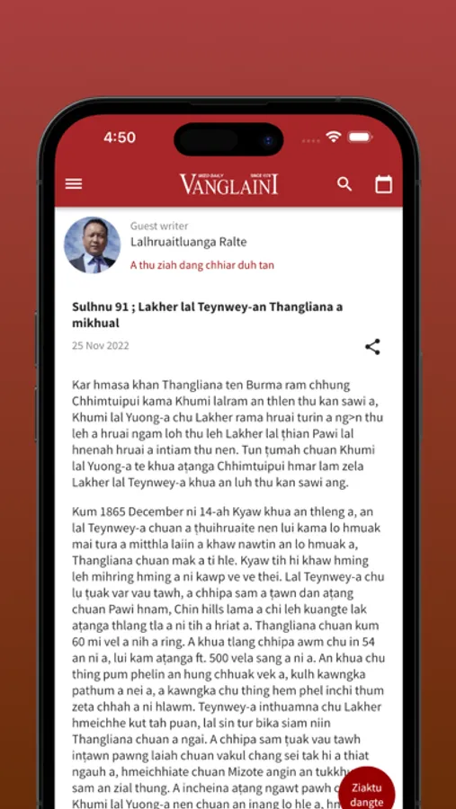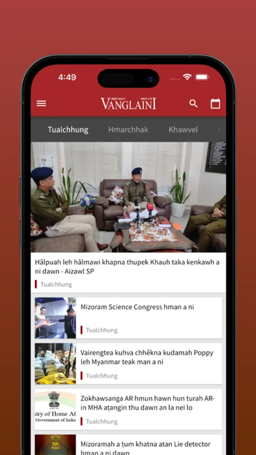 Vanglaini, the leading newspaper in Mizoram, started as a Mizo weekly in 1978, became a daily in 1986. Since then it has been continuously growing in circulation, readership and quality covering the entire state of Mizoram.