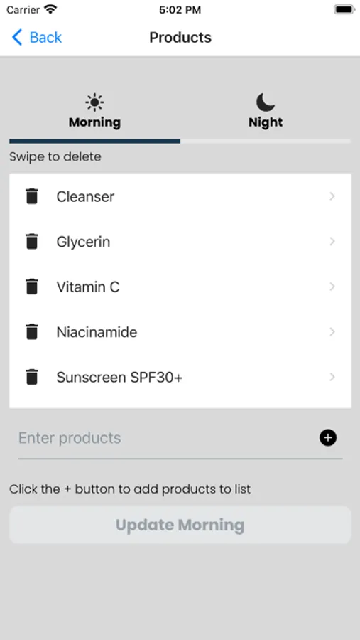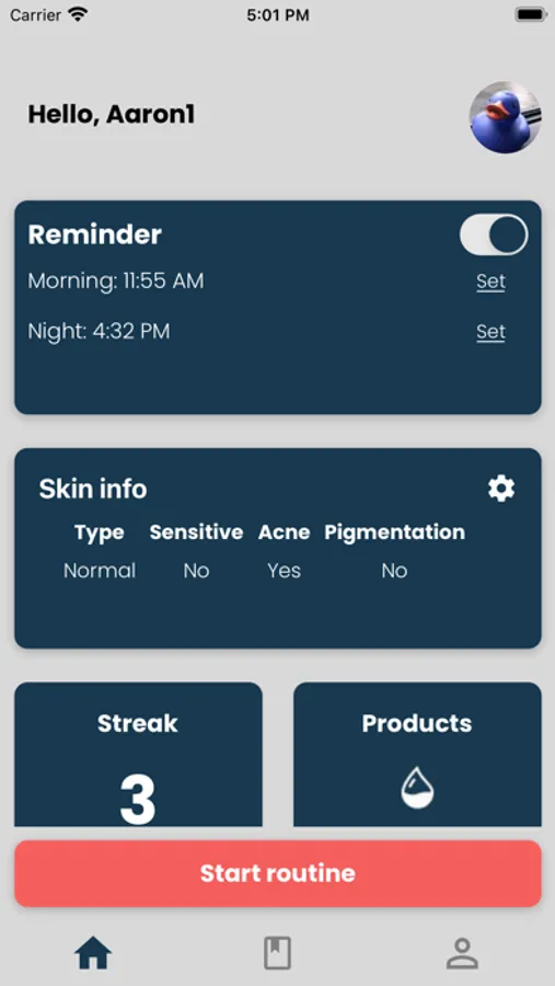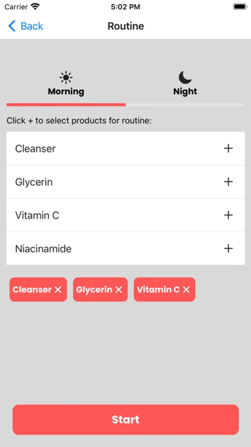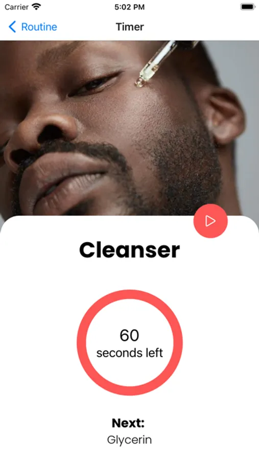 2. Timer for your routine process and streak to encourage consistency. the timer can be paused between products and users can preselect the products they want to use for each routine.