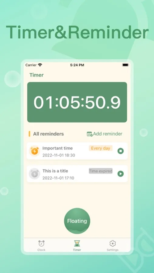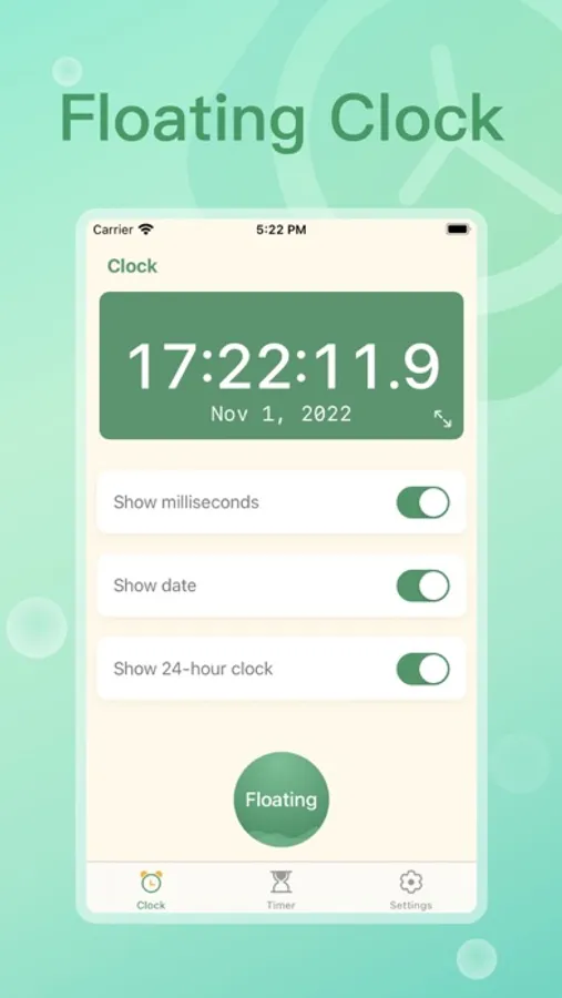 Floating Clock, it can be displayed on top of any App. Provides milliseconds level time and timer, accurate notification reminder.