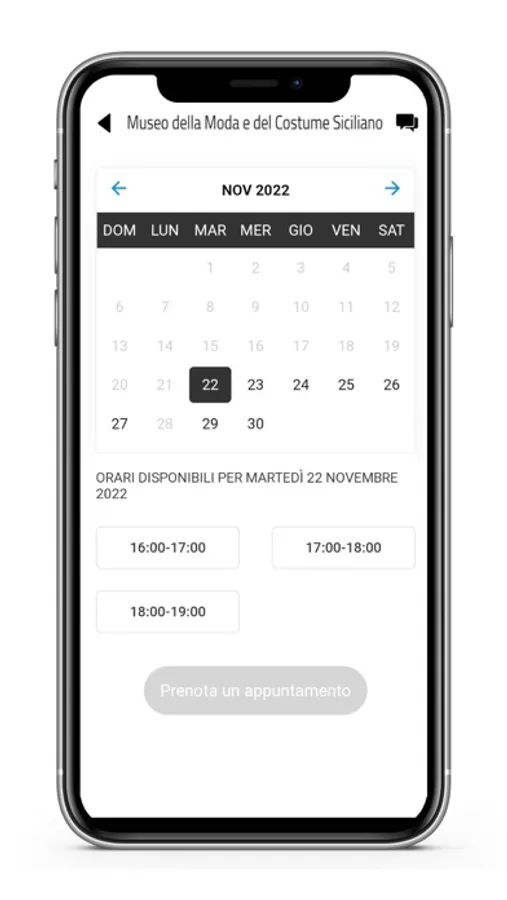 L'App Museo Costume e Moda siciliana consente di prenotare la visita al Museo, contattare ed ottenere informazione dai collaboratori, conoscere la storia e le sale presenti all'interno, anche attraverso il Virtual Tour, restare sempre informati sulle attività e mediante una chat interna avere la possibilità di scambiarsi opinioni e chattare con il Museo.