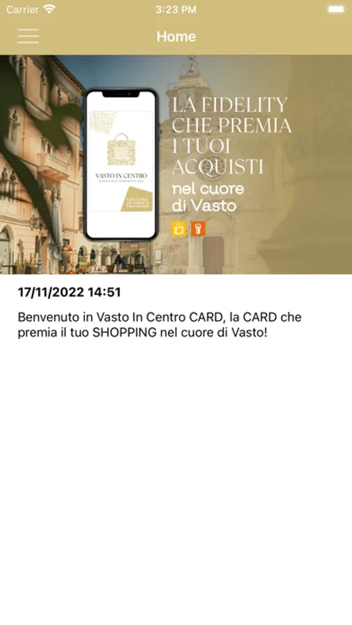Su questa App, trovi la CARD virtuale che premia i tuoi acquisti nel circuito Vasto In Centro e tanto altro.