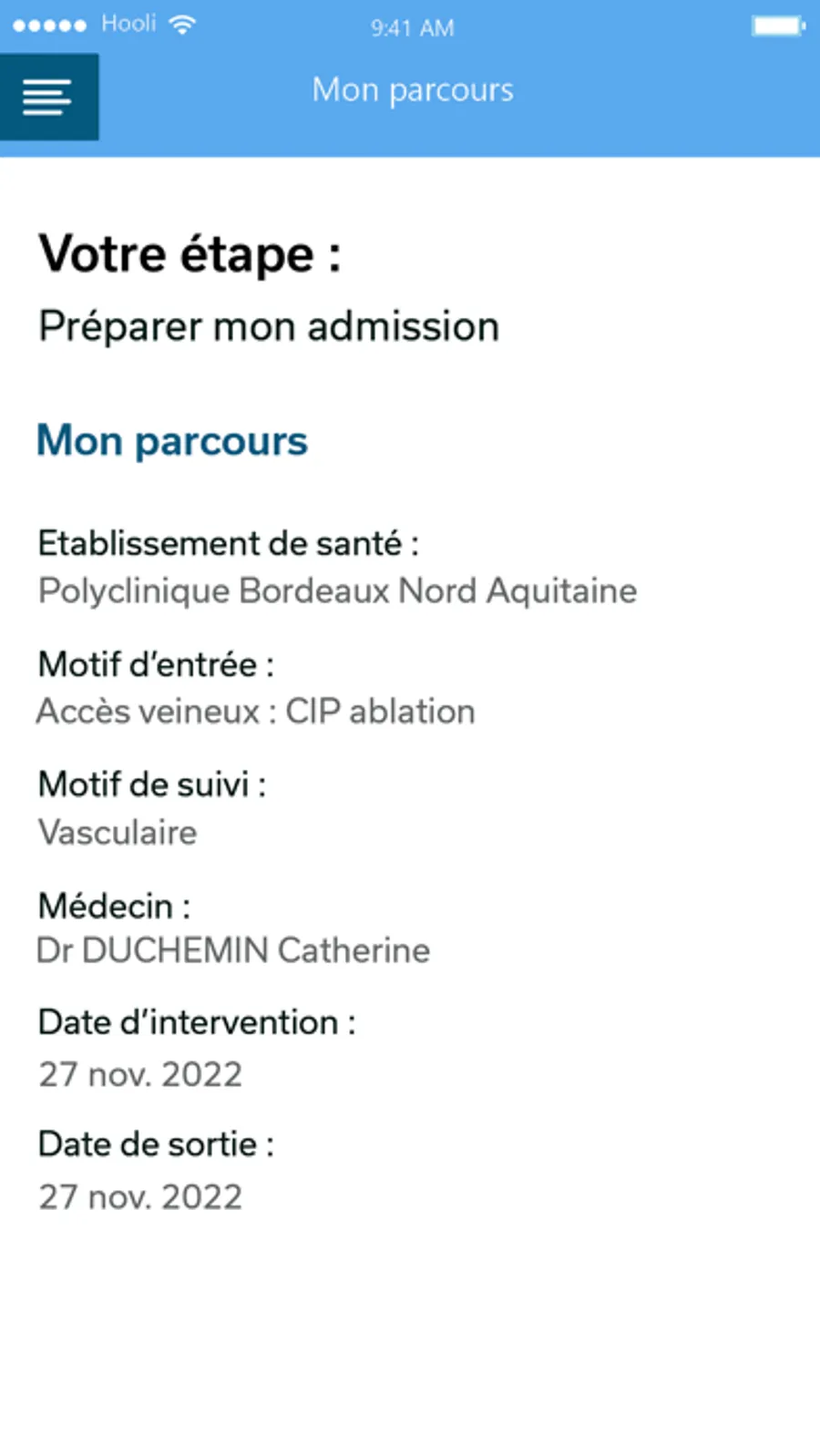 Mon Sejour PBNA est une application qui permet aux patients d’être connectés avec la polyclinique Bordeaux Nord Aquitaine et d’échanger de manière sécurisée des informations administratives et médicales tout au long du parcours de soins.