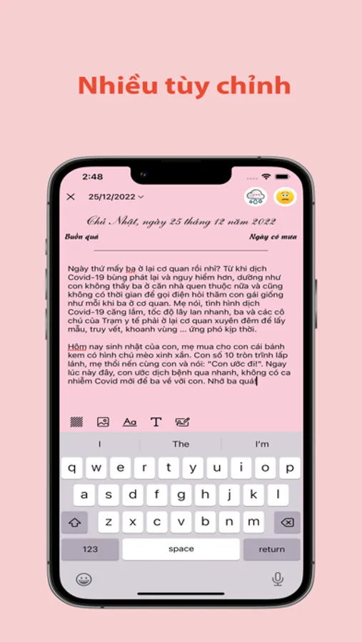 Ứng dụng nhật kí mang lại khả năng tùy chỉnh cao cho người sử dụng. Bạn có thể tự tạo giao diện mà mình thích