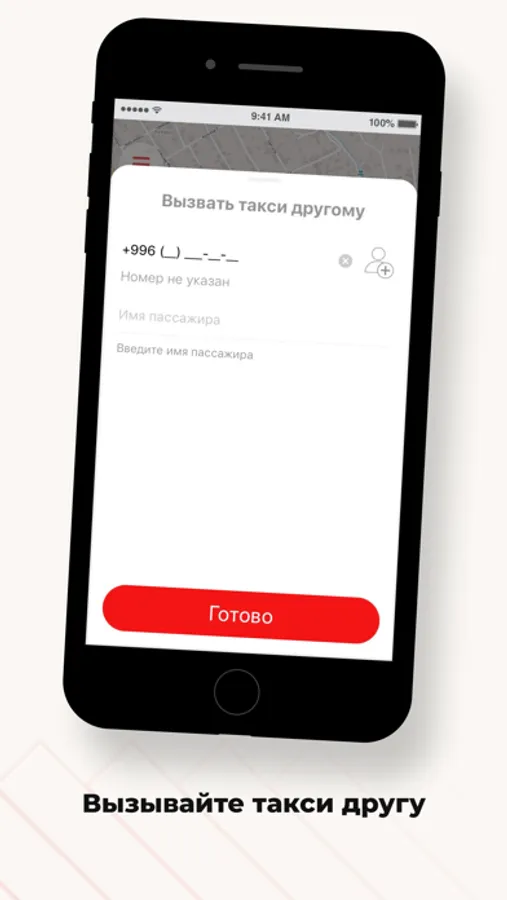 Используйте опцию “Вызвать такси другому” в разделе “Пожелания” и укажите его номер телефона. Когда такси подъедет, на указанный номер придет СМС, а вам — сообщение в приложении.