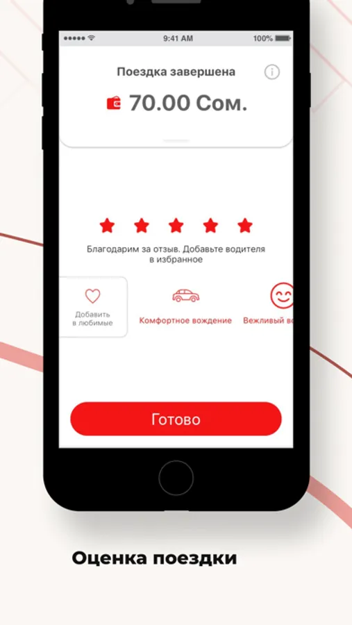Оценивайте поездку с помощью готовых шаблонов. Занесите водителя в “Избранные”, если понравилась поездка.