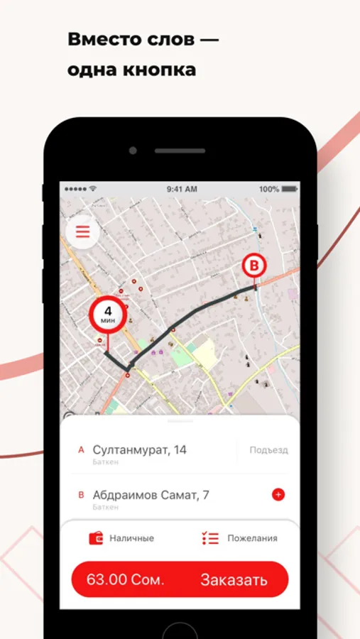 Откройте приложение, укажите адрес и закажите такси, нажав на одну кнопку.