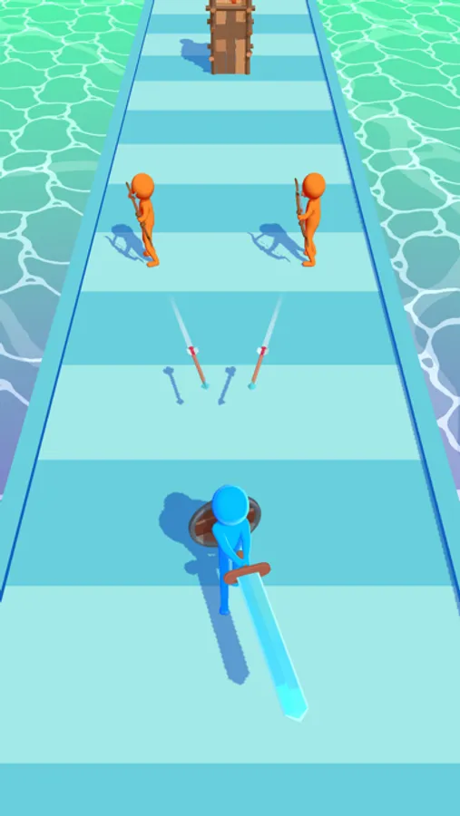 Rotate the sword around, thereby destroy the running enemies in front. Raise the shield that will save you from the arrows of the archers. Chop down trees to build a bridge over the abyss.