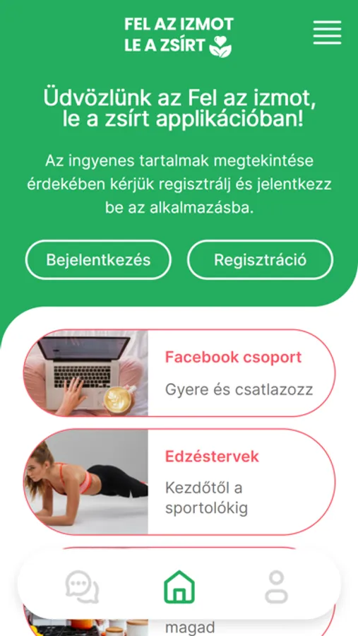 Magyarország legújabb edzés és étrend tervező alkalmazása személyre szabott programokkal segít a nap 24 órájában, hogy elérd a céljaid! A Fel az izmot, le a zsírt! mobil alkalmazás személyi edző és táplálkozási tanácsadó egyben, havidíja kevesebb, mint egy kondibérlet, ráadásul a zsebedben is elfér!