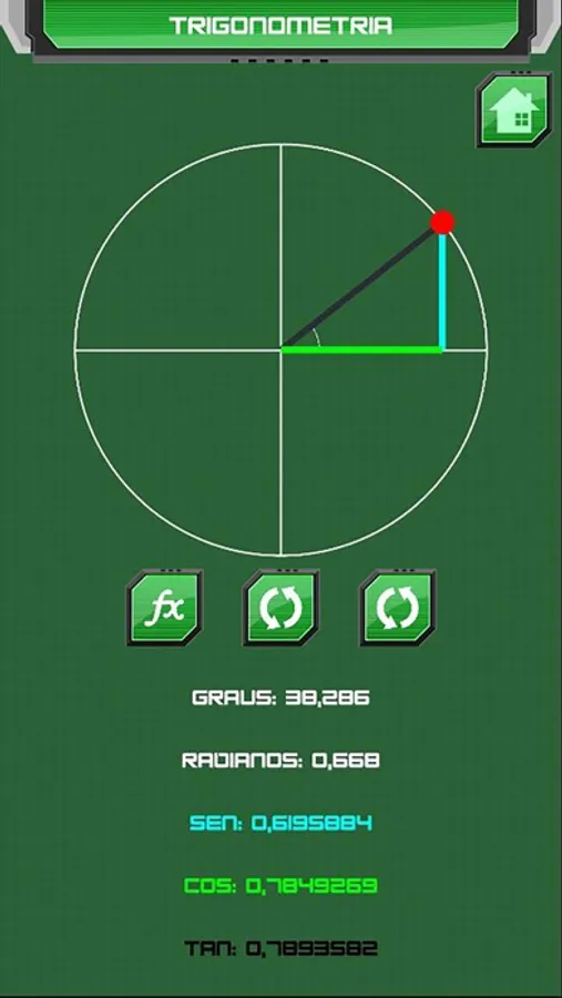 Aplicativo para estudantes de matemática, com conteúdos de geometria e trigonometria. Projete formas como círculos, retas e polígonos na opção de trigonometria, veja as funções de seno, cosseno e tangente na opção de geometria.
