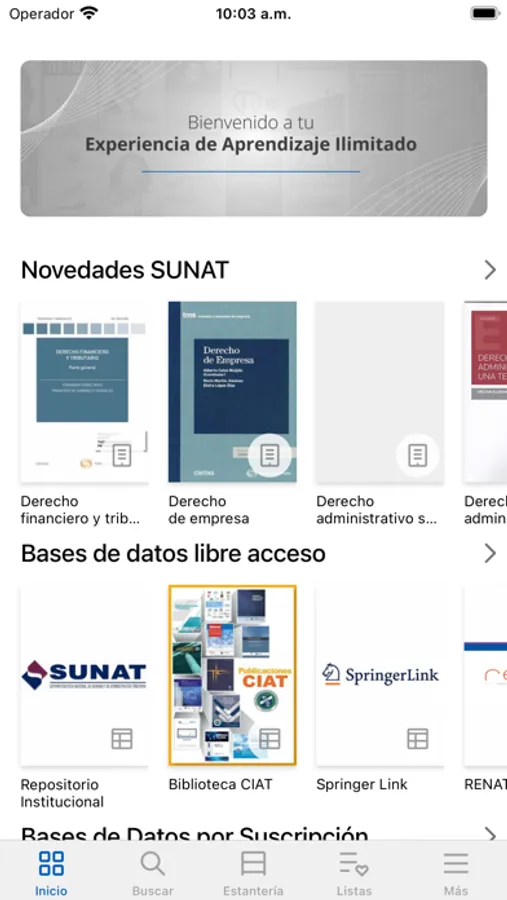 * Libros y revistas digitales: Tenemos una colección con más de 200 libros digitales de las últimas ediciones en temas de comercio exterior, tributación, administración, derecho, entre otros, de editoriales nacionales y extranjeras. Revistas especializadas como: Actualidad Empresarial, Análisis Tributario, Contadores y Empresas, The World Bank Economic Review.
