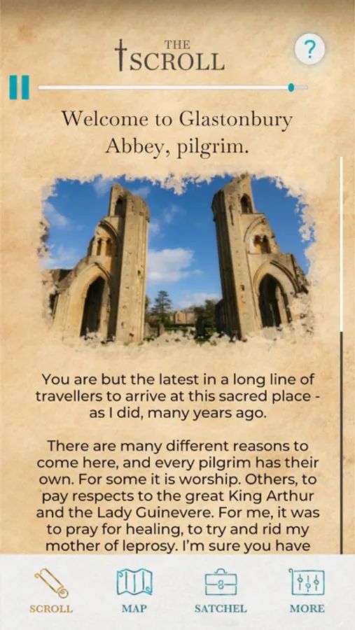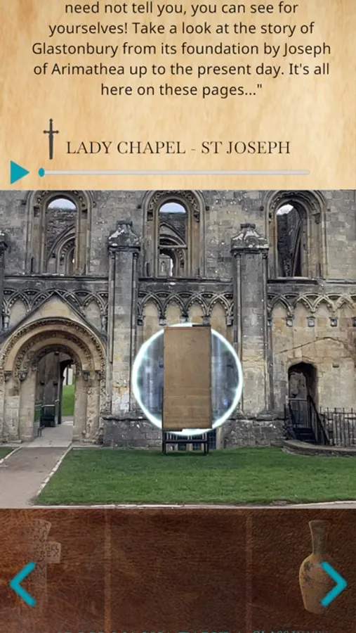 Glastonbury Stories has been designed for use on site at Glastonbury Abbey; please visit https://glastab.be/stories for instructions on how to access the experience from elsewhere.