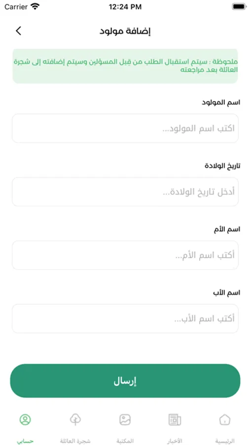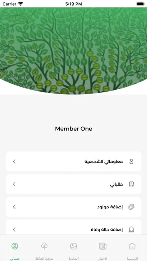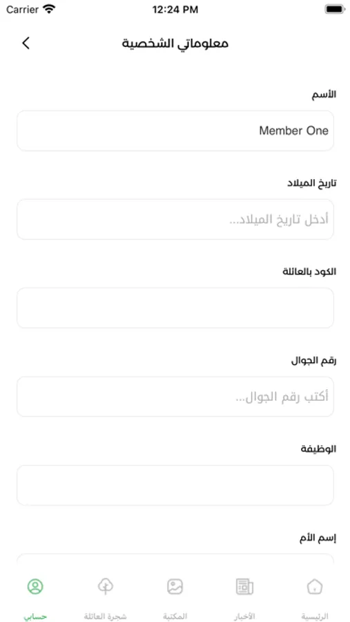 1. حساب شخصي لكل فرد من العائلة يحوي على بياناته ومعلوماته الشخصية.