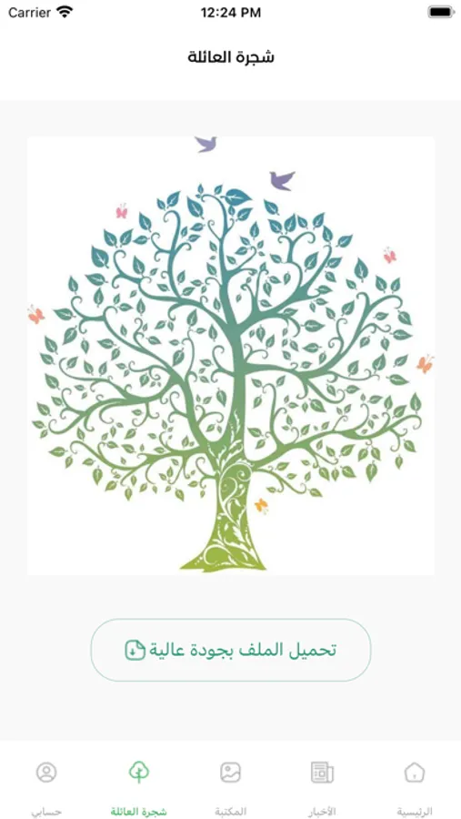 2. صورة تحمل شجرة نسب العائلة (بالإمكان استخدام شجرة العائلة الخاصة أو الشجرة التفاعلية المتوفرة داخل التطبيق).