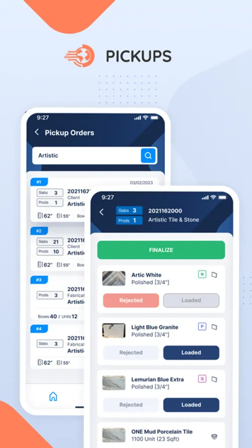 Mobile App to manage Distributor's deliveries of Natural Stone Slabs to Fabricators