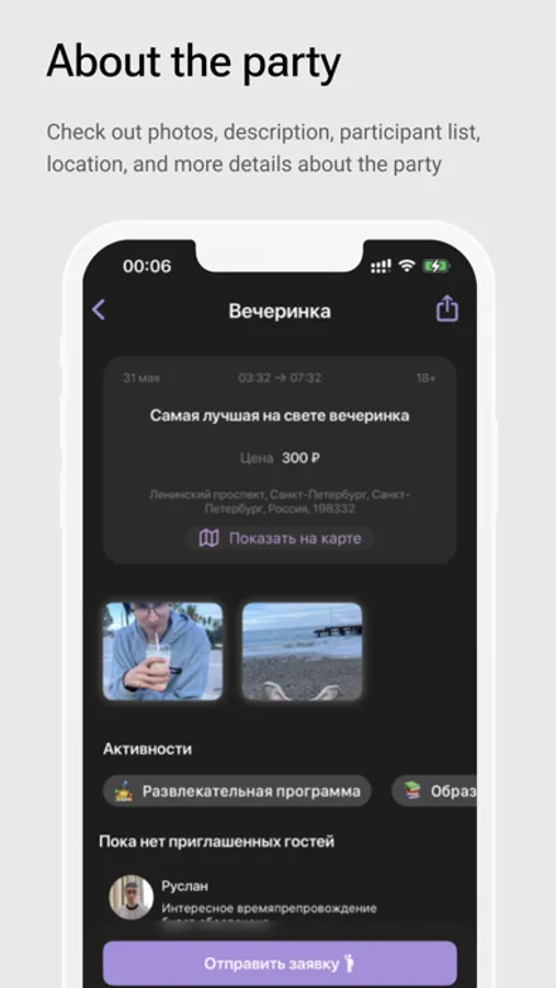 Personal Profile: Showcase your party personality! Fill out your profile with your interests, preferences, and any special requirements to connect with like-minded partygoers.