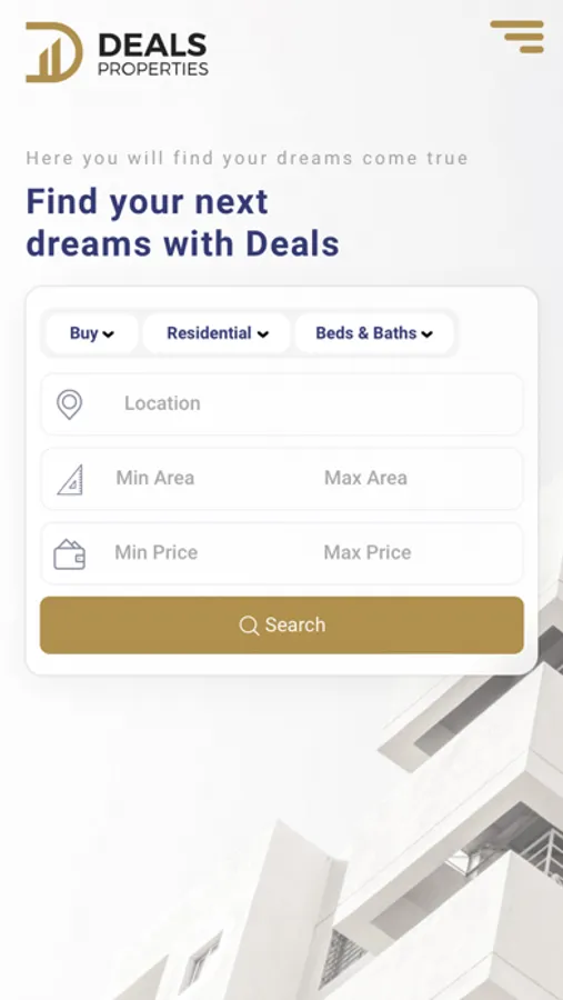 The Dealsproperties App connects you with a vast database of active properties in the UAE, allowing you to find apartments, villas, offices, townhouses and shops.