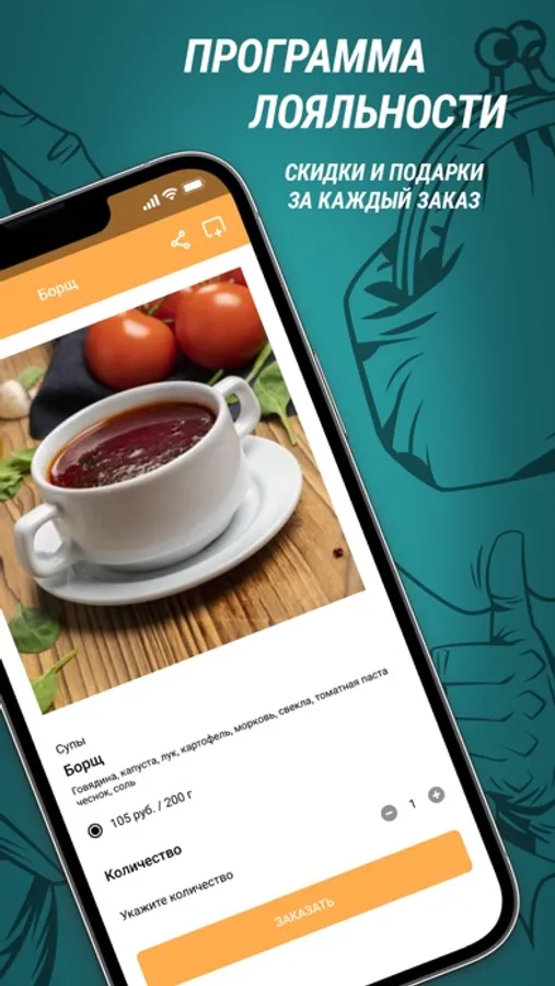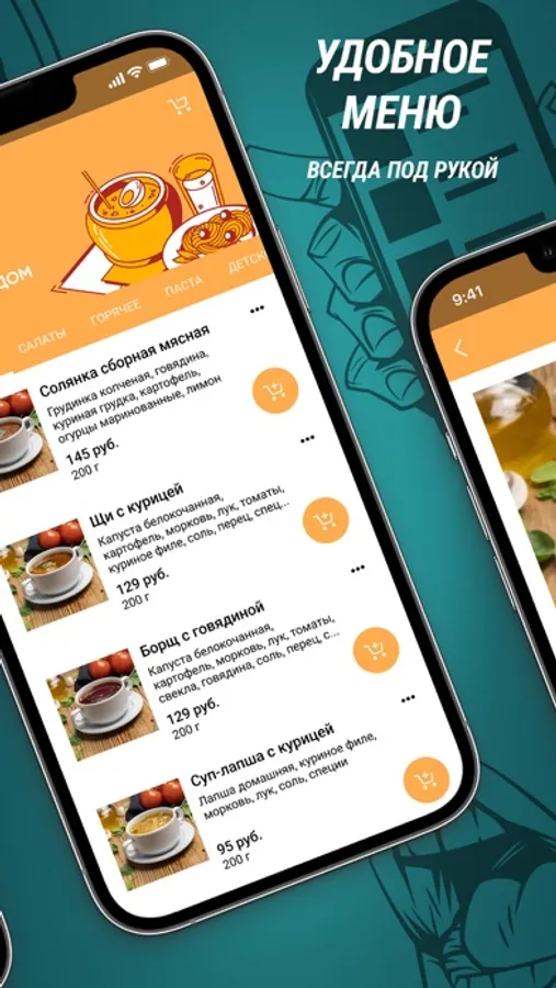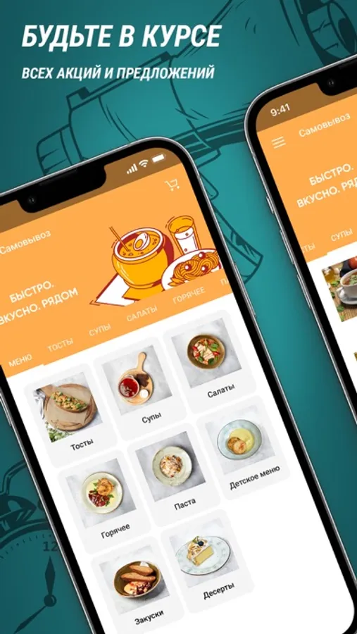 Заказать готовые блюда и кондитерские изделия вы можете через мобильное приложение. Достаточно выбрать способ получения заказа, добавить полюбившиеся блюда в корзину и указать контактные.