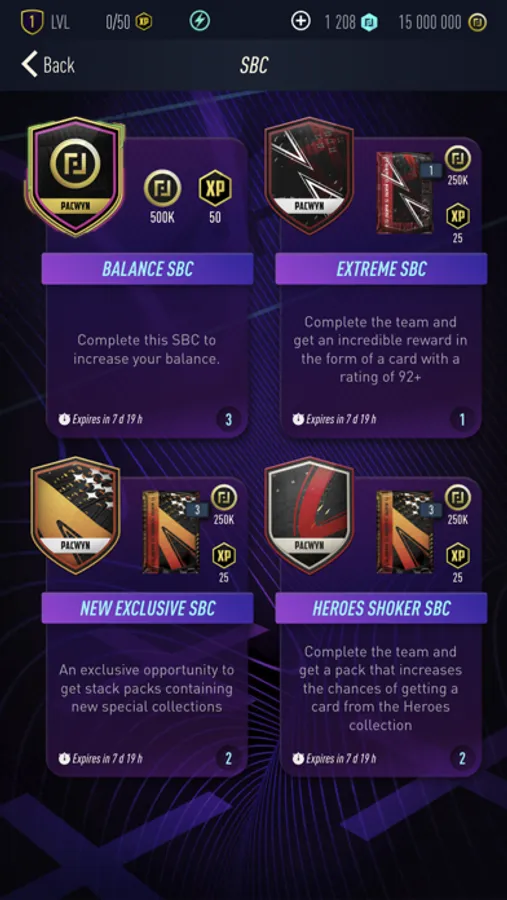 Open a lot of packs every day and complete collections of football players. The game offers you exclusive challenges, like drafts, squad building, objectives, and achievements - there is everything for you in the game.