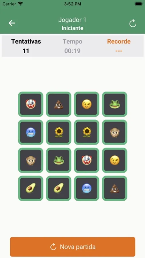Desafie sua capacidade de memorizar imagens com um divertido jogo da memória de emojies.
