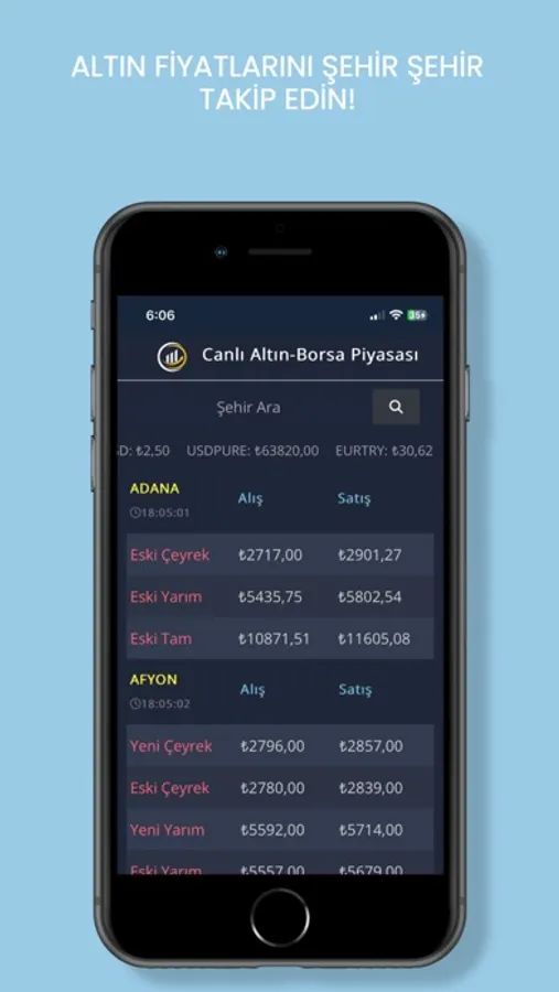 Şehirinizde ki altın fiyatlarını net olarak takip edebilirsiniz.
