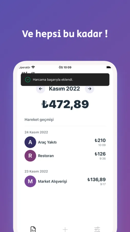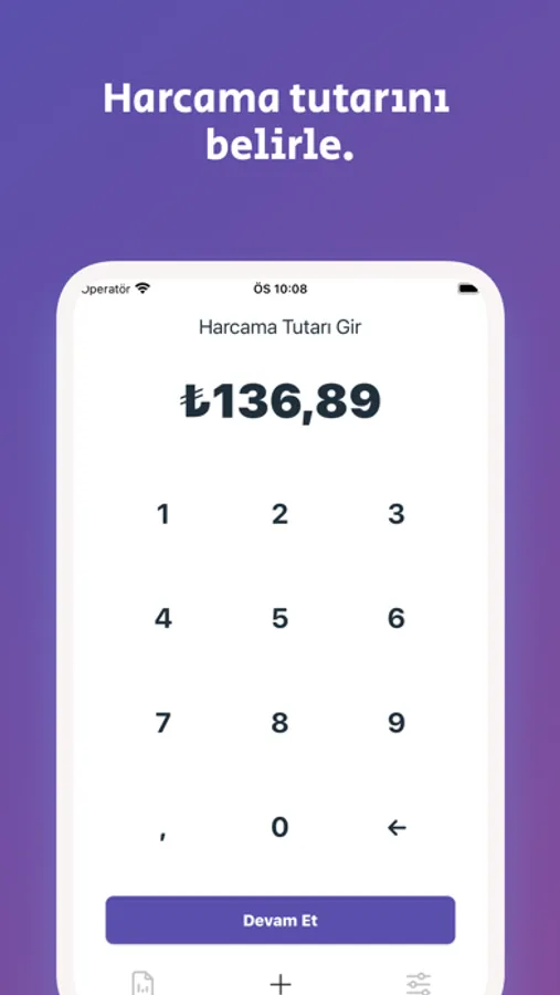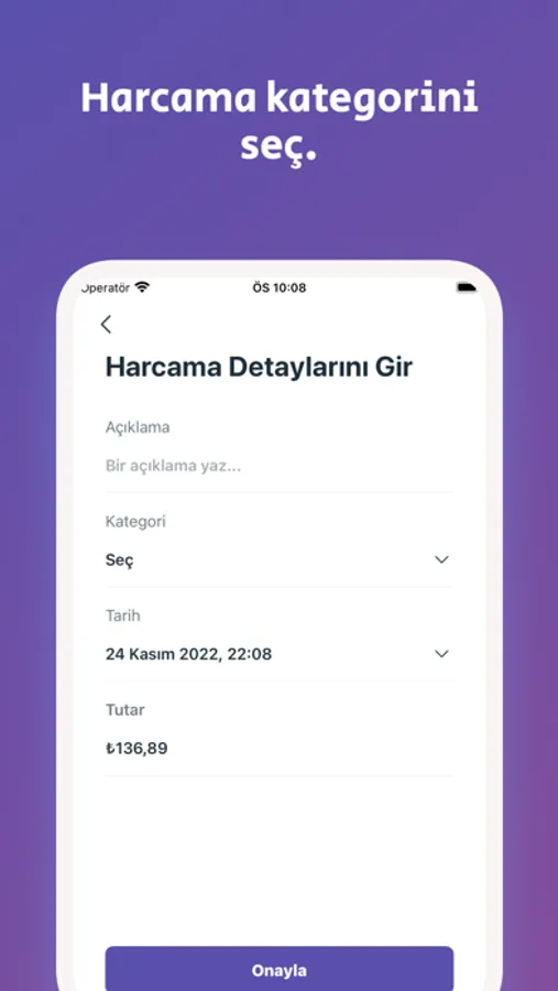 * Gün içinde yapmış olduğun harcamanın tutarını gir, kategorisini belirle, eğer dilersen harcamana bir açıklama gir veya farklı bir tarih seç ve onayla.