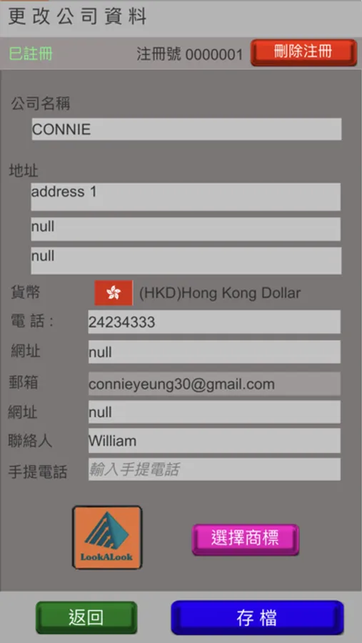 應用範例1: 公司名稱 : CONNIE |密 碼 : demo