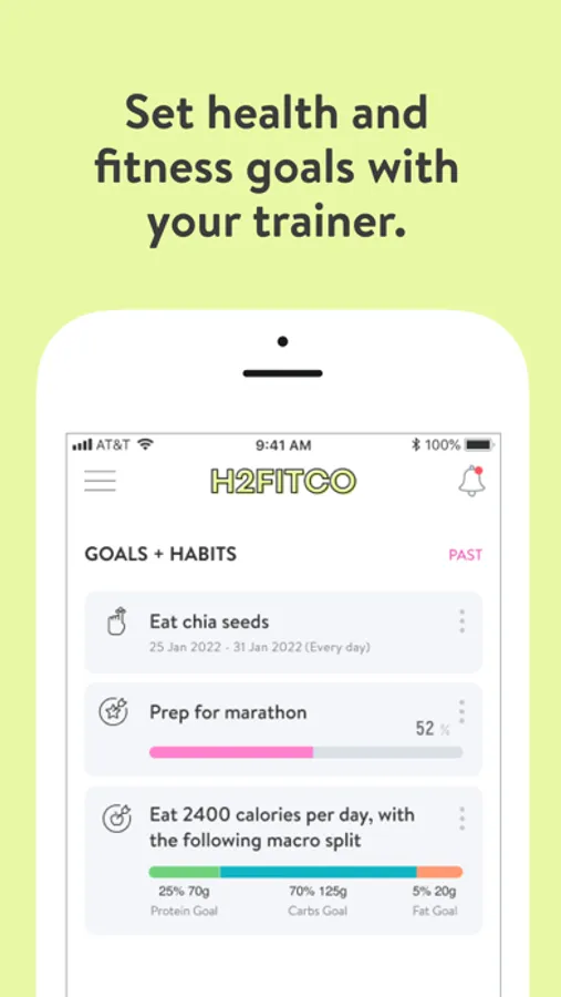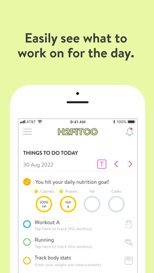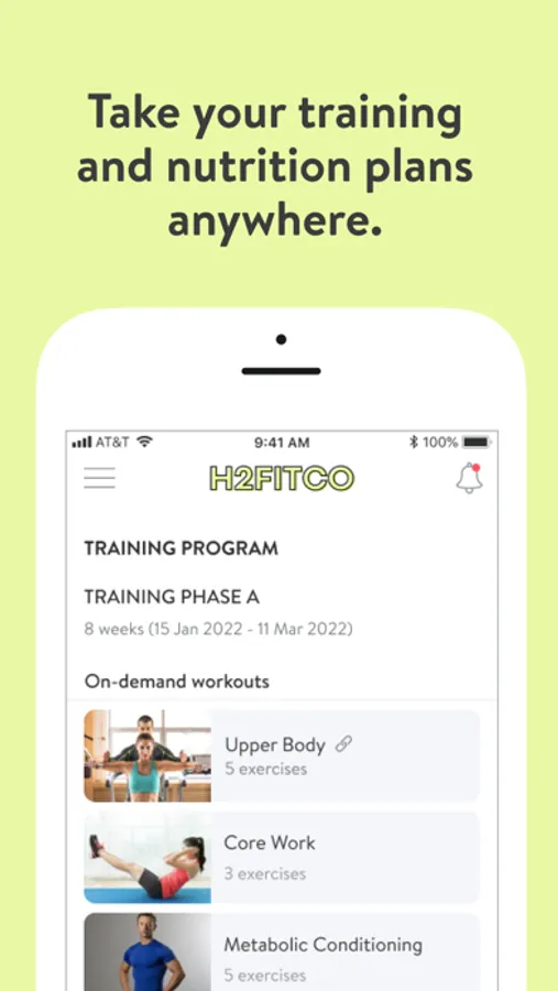 With the H2FITCO App, you will have access to workout programs designed specifically to help you reach your fitness, health & wellness goals! Includes follow along workouts, gym & home workouts, nutrition programs, recipes, ability to track your lifestyle habits, measurements and results–all with the help of your coach.