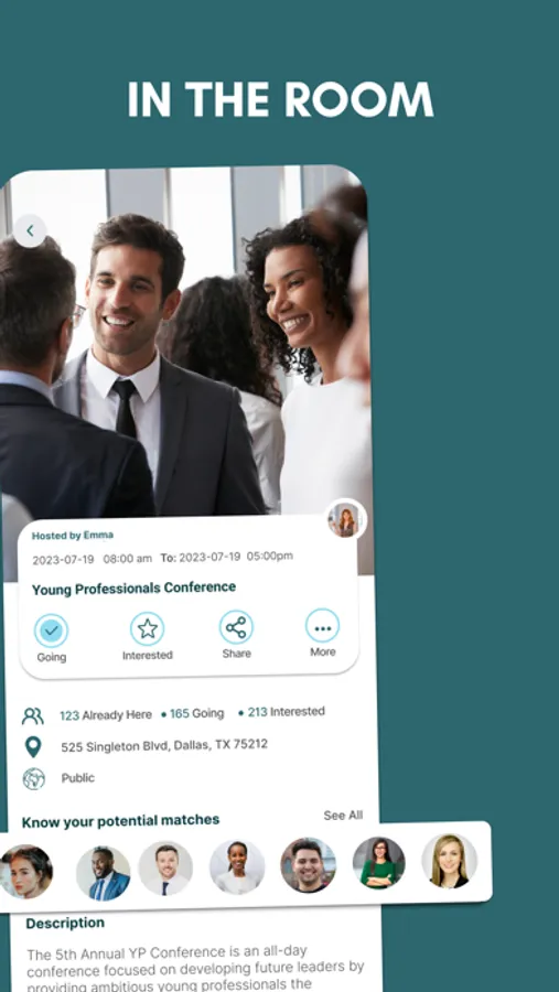 Find and identify current and future get-togethers with your matches. RSVP, connect, chat and start learning more before about your connections before the in-person meeting.