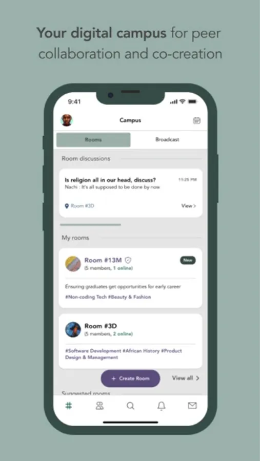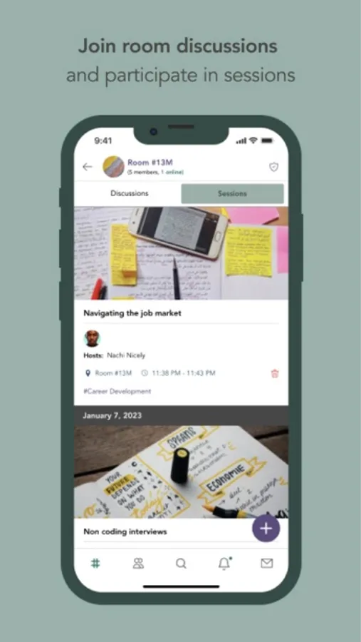 - How about as a group? Create and join discussion threads or schedule sessions within rooms based on any topic.