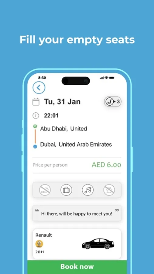 Create your profile, publish your trip, receive booking and get payed simply