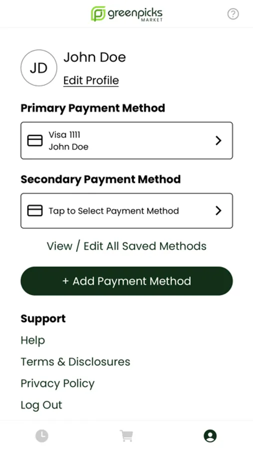 Download the app to access the store, manage your payment method, check your order history, and submit help requests.
