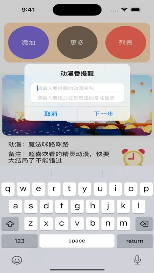 不忘动漫番录一款动漫追番提醒工具,怕错过自己喜欢的动漫番剧吗?那就动起你的小手把你喜欢的番剧添加进来,更好的提醒你的便捷小工具