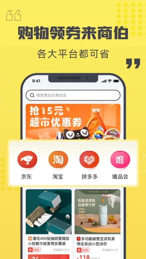 商伯是一款电商平台优惠券购物软件,既能省钱又能拿大额优惠券,还可叠加专享大额省钱优惠券,“多省钱,能生钱”,超多网红达人都在用哦!