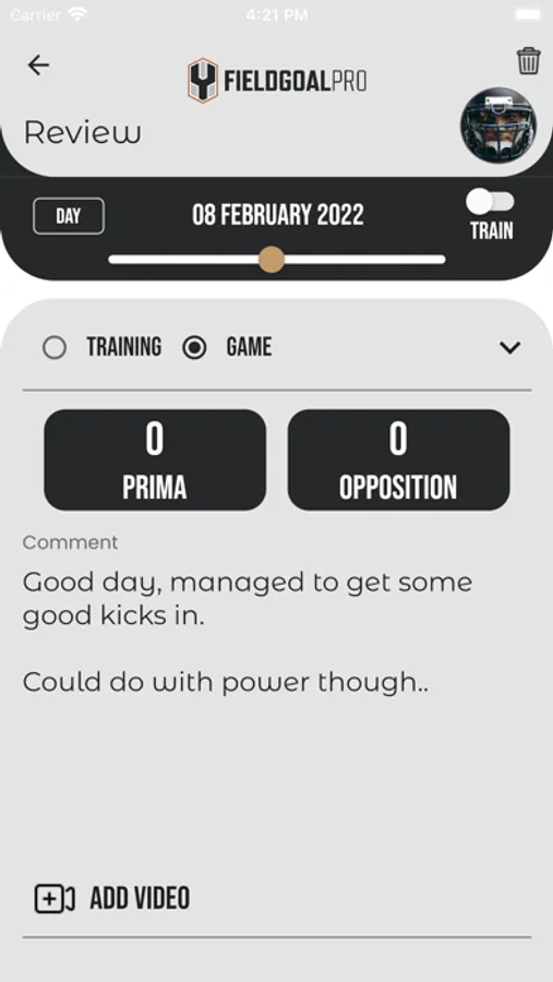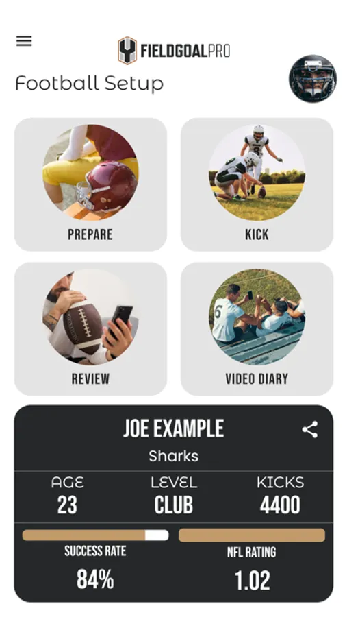 The FieldGoal Pro App provides a complete training partner for players, including: