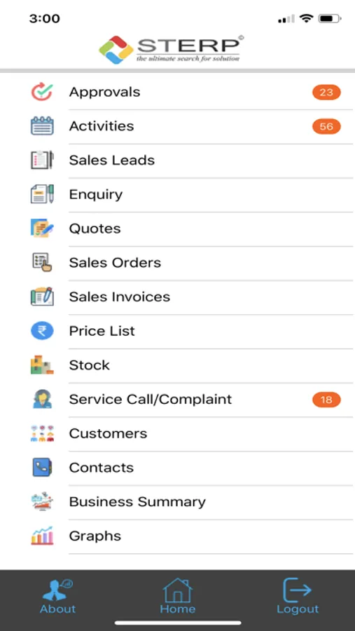 The STERP Mobile App is a mobile ERP that offers instant access to all your business functions in iPhone and iPad. This app provides detailed day to day business summary, graphical summary, manage contacts, call & sms customers in just a tap. Business Owners or any user can have real-time access to Approvals, Business Summary, Alerts, and can easily enter data in the ERP or assign activities to any other users from any remote location. With this STERP Mobile App, users can easily create, access and share business information through hand-held mobile devices.