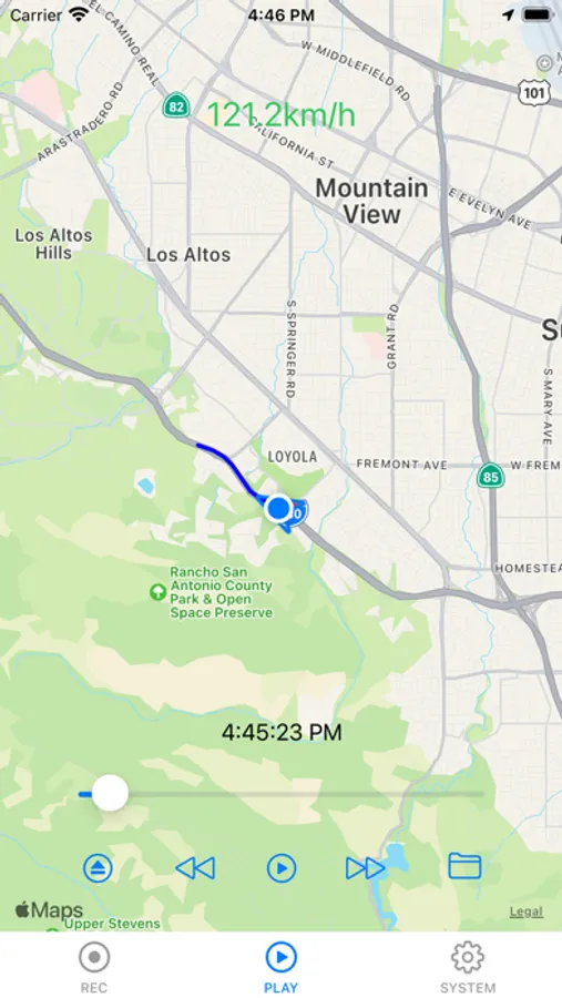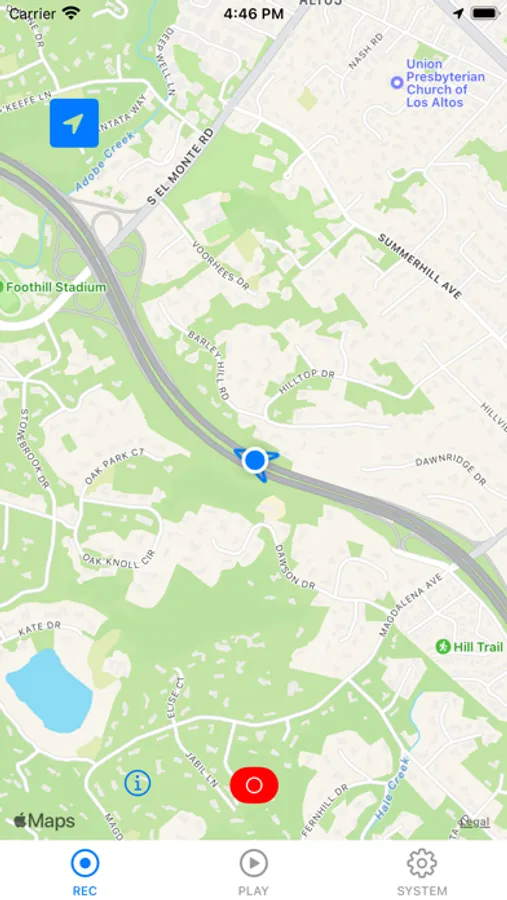 Stop recording when tap the Rec button again. It will automatically save your logging data to "Track&Player" folder as a csv file.