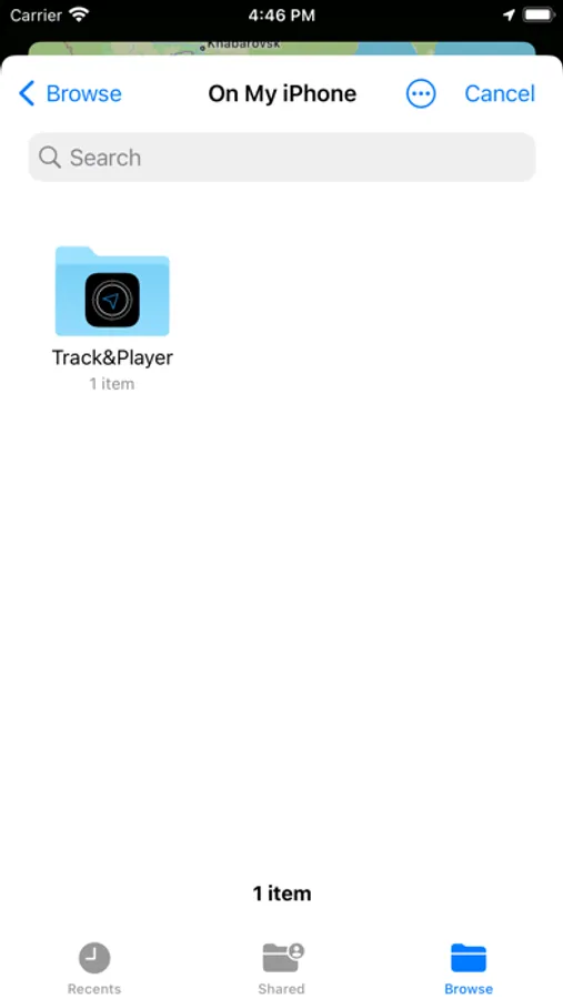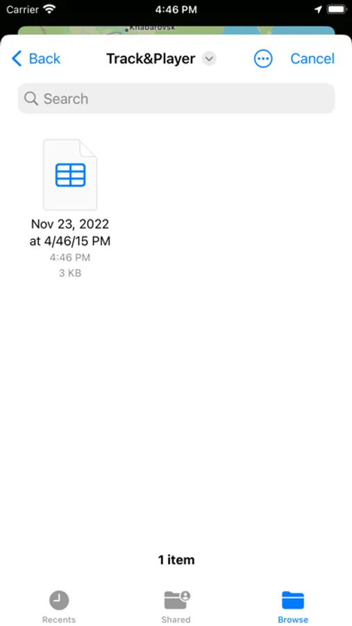 Tap the file button at the bottom right corner on the screen, it will show you FILE app. select "Track&Player" folder then select appropriate file named by the date.