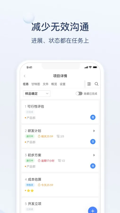 ● 可进行跨团队任务协作以及把项目分享给合作伙伴查看