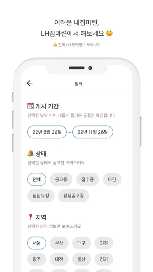 - 내가 원하는 지역, 공고 상태도 지원해드려요