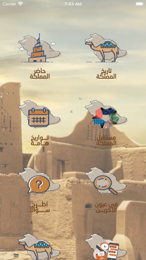 تطبيق خاص بالتعريف بالمملكة العربية السعودية حيث يشمل عدة أقسام:-