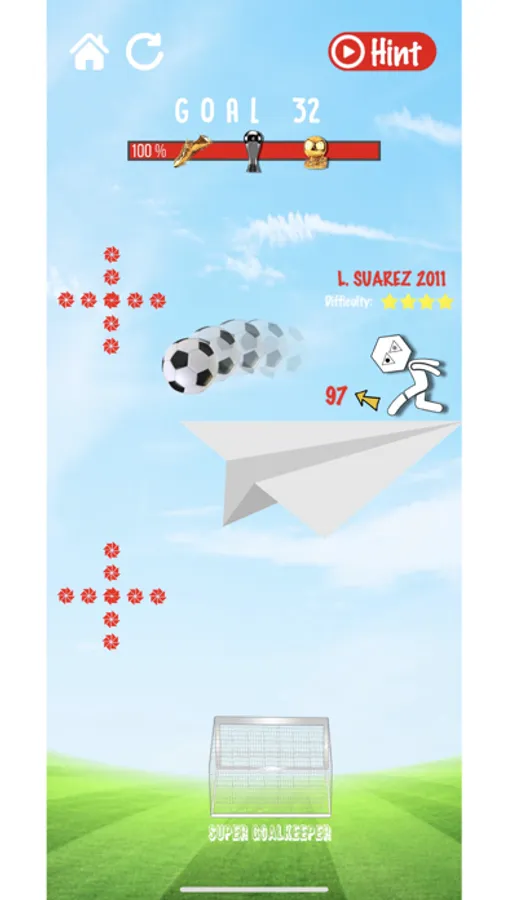 Fun soccer simulation sports game. Players will draw lines to create the direction for the ball to find the way to the goal. The less strokes you use, the more reward you will receive in each level.