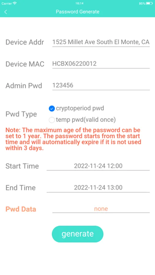 1. Cryptoperiod password: This password can be generated by setting the start time and end time. Entering this password within this valid period can open the smart box multiple times. The longest period can be as long as one year.
