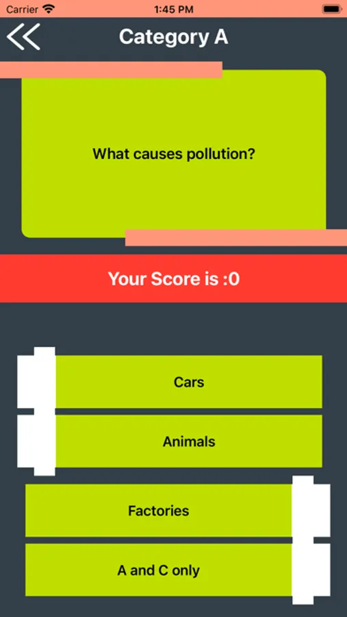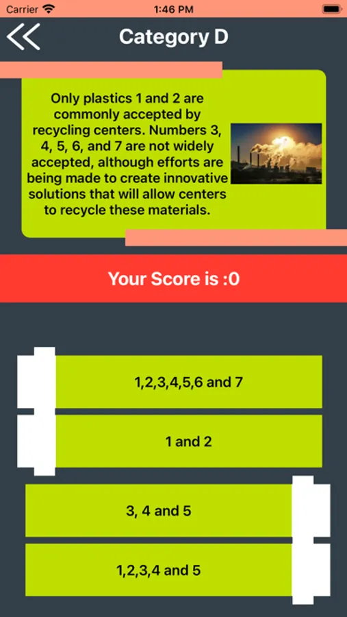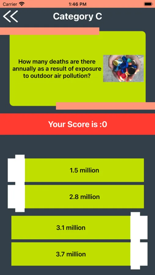 Istnieją cztery różne poziomy, użytkownik otrzyma pytania związane z zanieczyszczeniem na wybranych poziomach.