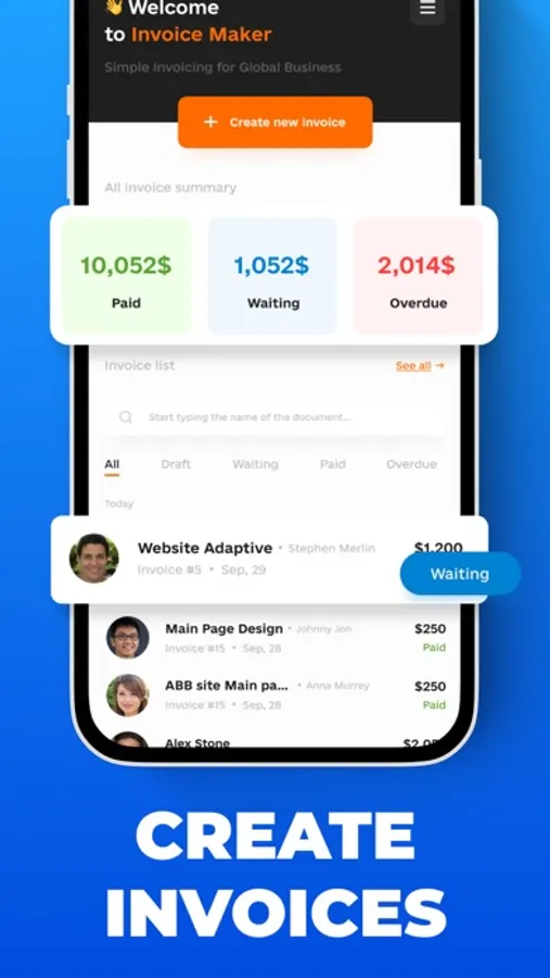 Invoice Maker-App is a fast and easy invoice app for sending invoices and estimates to your customers.