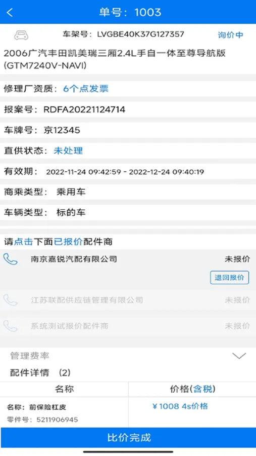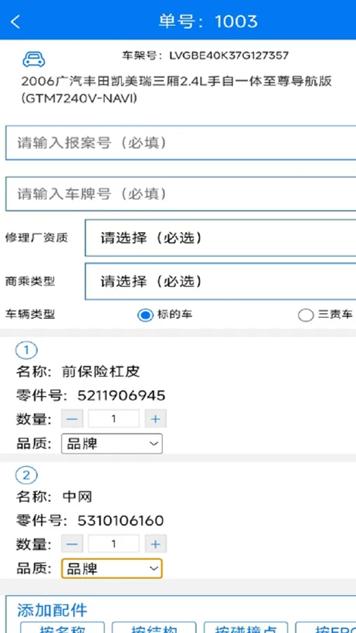 为保险公司的定损员和修理厂提供一款汽车配件价格询价和报价工具