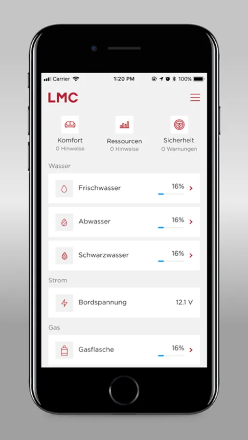 The information app for your LMC vehicle! With the LMC Home App, you always have your mobile home in view. Always keep an eye on the fill level of your water tank, the tyre pressure, the room temperature or even the drawbar load. For more driving safety, comfort and an even better bond with your vehicle.